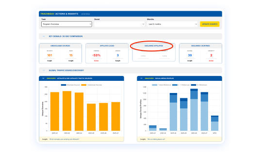 Gain visibility on sub-affiliate activity; identify unauthorised links and traffic sources, and ensure compliance across all affiliate levels. Take action against low quality traffic sources and/or fraudulent referrals.